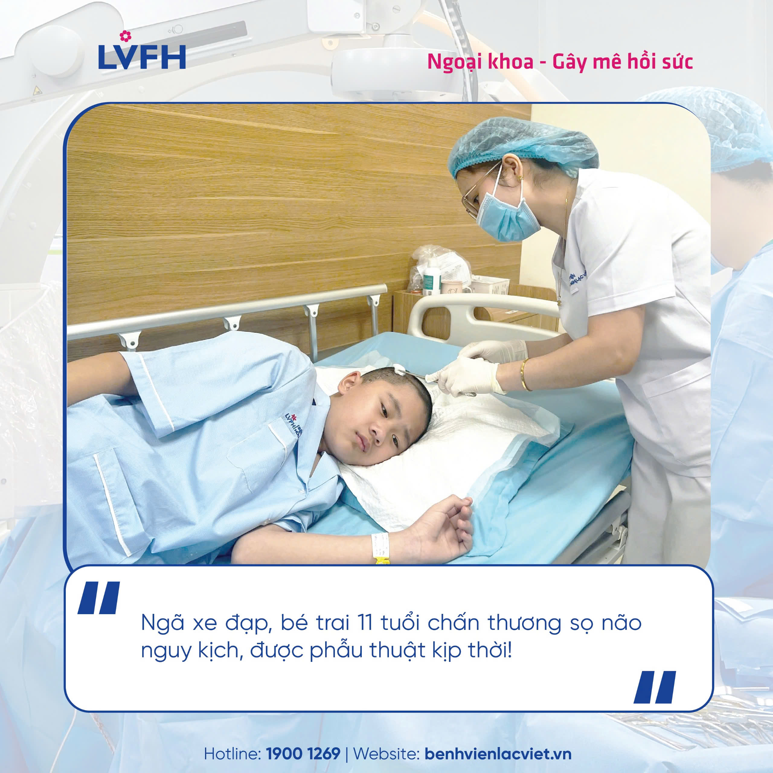 Bệnh nhi được chỉ định mổ cấp cứu tối khẩn cấp, lấy máu tụ ngoài màng cứng, giải phóng chèn ép não và cầm máu.