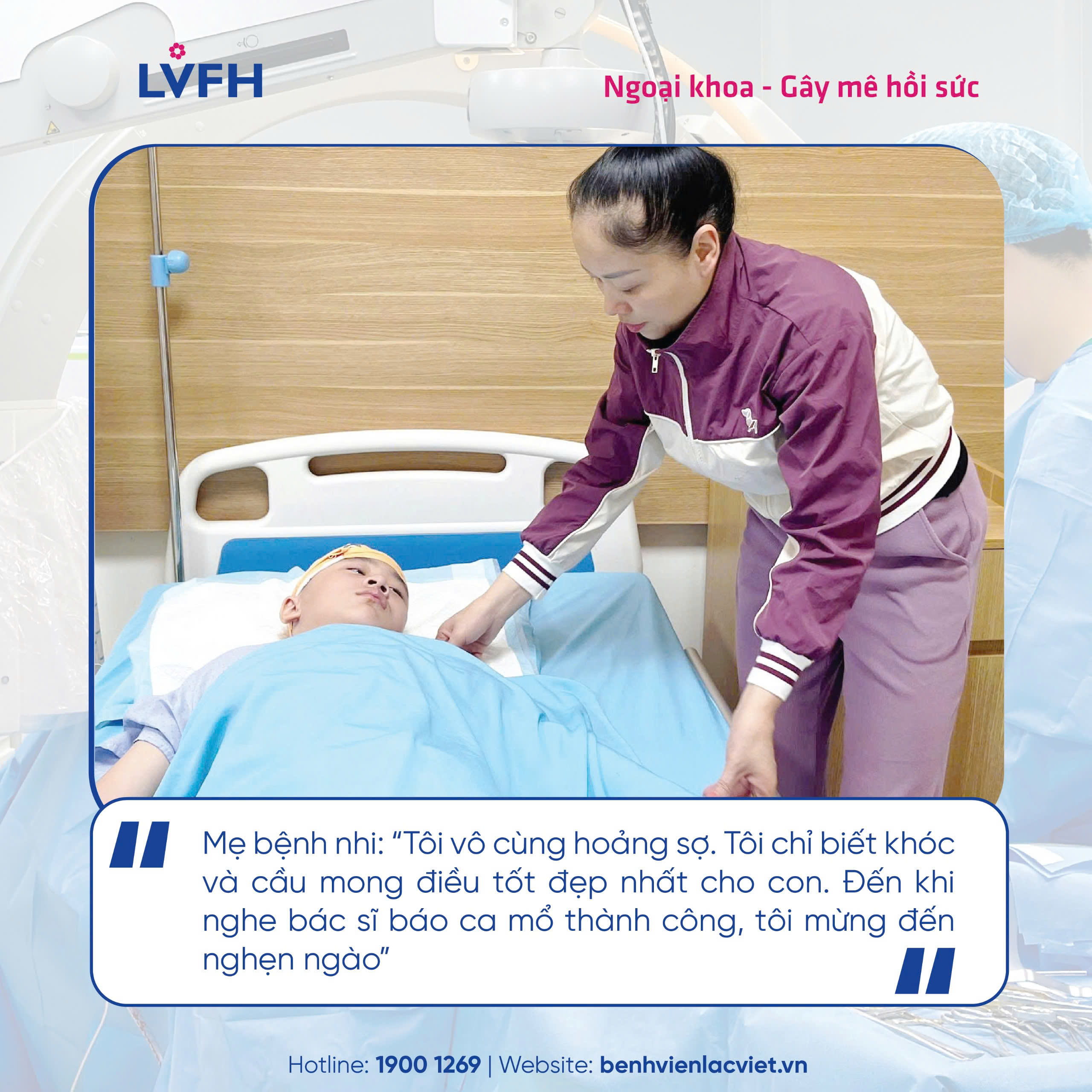Chị Trần Thị Thúy – mẹ bệnh nhi Đoàn Nguyên Tú xúc động chia sẻ: “Khi các bác sĩ thông báo con tôi phải phẫu thuật để lấy máu tụ, tôi vô cùng hoảng sợ. Suốt thời gian chờ đợi bên ngoài phòng mổ, tôi chỉ biết khóc và cầu mong điều tốt đẹp nhất cho con. Đến khi nghe bác sĩ báo ca mổ thành công, tôi mừng đến nghẹn ngào. Gia đình xin gửi lời cảm ơn chân thành tới các bác sĩ và Bệnh viện Hữu nghị Lạc Việt. Giờ đây, tôi hoàn toàn tin tưởng vào trình độ chuyên môn và tay nghề của đội ngũ y bác sĩ của bệnh viện không hề thua kém bất cứ đâu”.