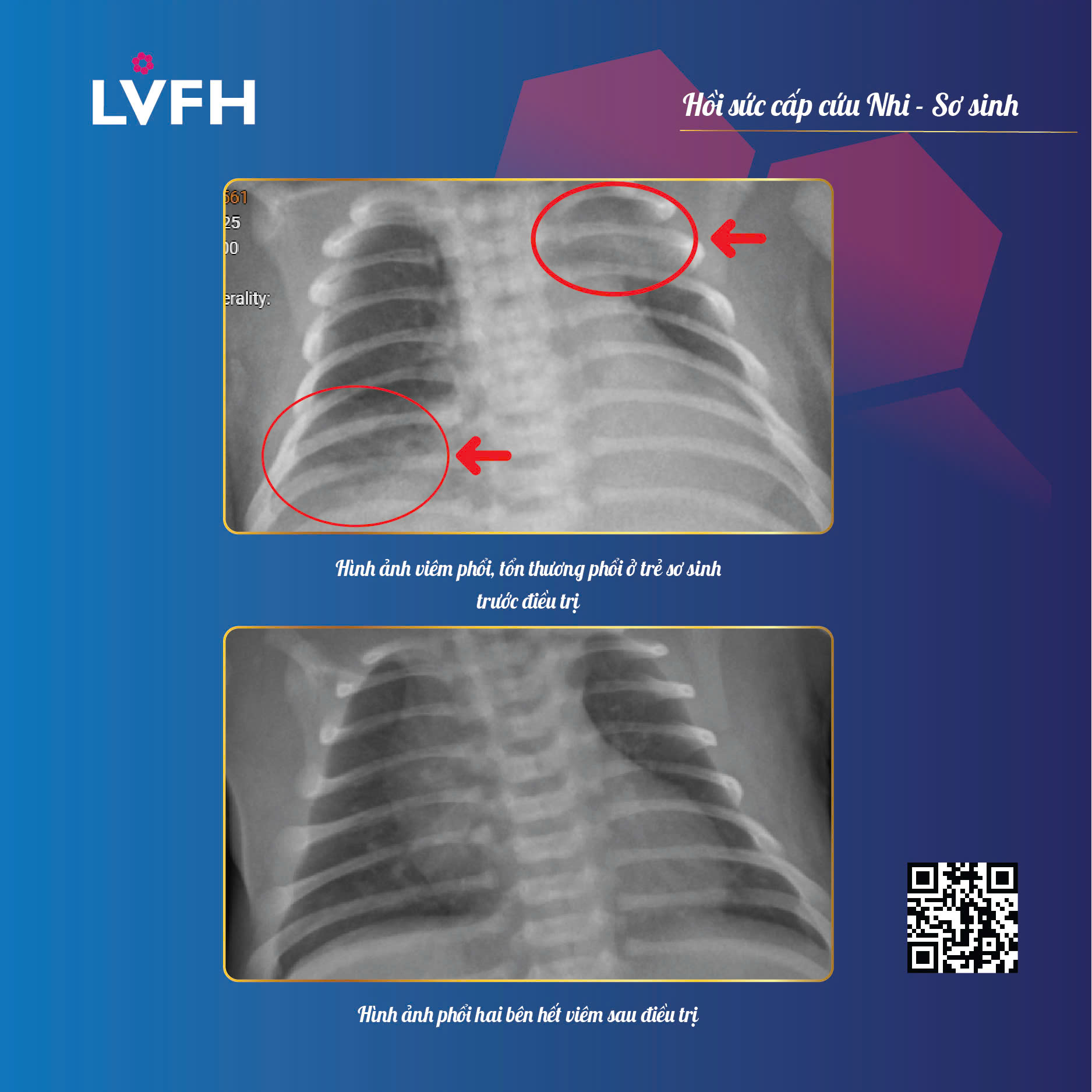 Nhận thông tin từ gia đình, ê-kíp bác sĩ lập tức thăm khám, chụp X – quang và hỗ trợ hô hấp bằng oxy, thở máy. Kết quả cho thấy trường phổi hai bên kém sáng, xác định bé bị viêm phổi bẩm sinh. Các bác sĩ quyết định bơm 4 lọ Surfactant – phương pháp quan trọng giúp mở phế nang, cải thiện nhanh tình trạng hô hấp.