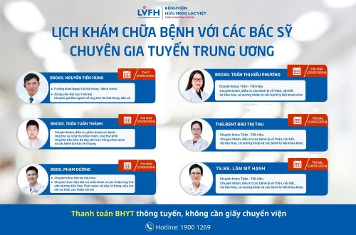 Lịch khám chữa bệnh của các bác sỹ chuyên gia tuyến trung ương trong tuần này