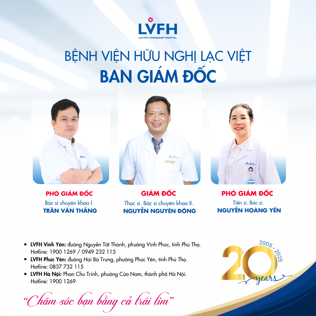 ——————————————– Hệ thống Bệnh viện Lạc Việt 🏥 LVFH Vĩnh Yên: Đường Nguyễn Tất Thành, phường Vĩnh Phúc, tỉnh Phú Thọ. ☎ 𝐇𝐨𝐭𝐥𝐢𝐧𝐞: 1900 1269 hoặc 0949 232 115. 🏥 LVFH Phúc Yên: Đường Hai Bà Trưng, phường Phúc Yên, tỉnh Phú Thọ. ☎ 𝐇𝐨𝐭𝐥𝐢𝐧𝐞: 0837 732 115. 🏥 LVFH...
