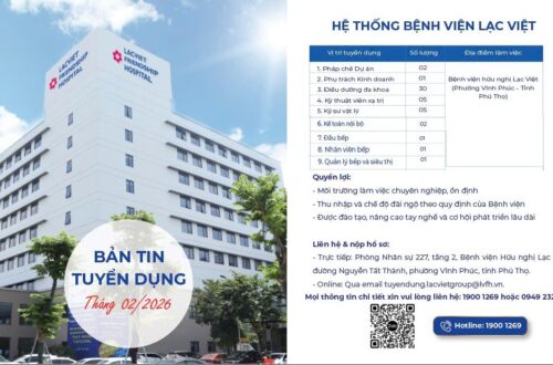 Bệnh viện Hữu Nghị Lạc Việt tuyển dụng các vị trí sau: 1️⃣ Quản lý bếp & siêu thị: 01 2️⃣ Đầu bếp: 01 3️⃣ Nhân viên bếp: 01 4️⃣ Pháp chế Dự án: 02 5️⃣ Phụ trách kinh doanh:...