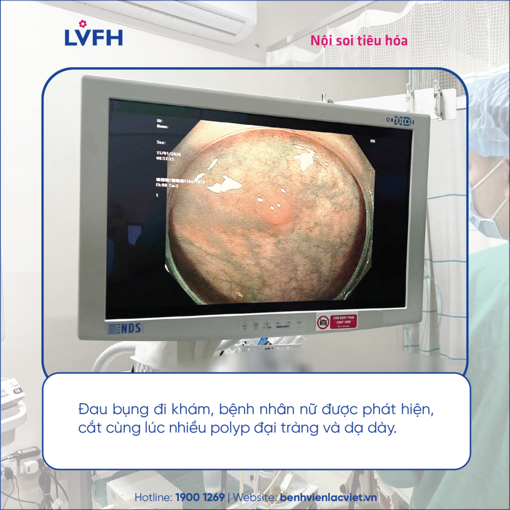 Khuyến cáo từ bác sĩ: Thăm khám định kỳ và phát hiện sớm polyp đường tiêu hóa giúp loại bỏ tổn thương ngay từ giai đoạn đầu, giảm nguy cơ tiến triển thành ung thư, mang lại hiệu quả điều trị cao và an toàn. Khi xuất hiện các dấu hiệu như đau bụng kéo dài, rối loạn tiêu hóa, đầy hơi, chướng bụng… người dân nên chủ động nội soi tiêu hóa sớm để được chẩn đoán và xử trí kịp thời.
