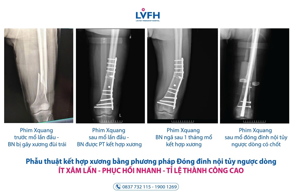 Hai lần gãy xương đùi trong một tháng – Bệnh nhân được mổ kết hợp xương bằng phương pháp ưu việt