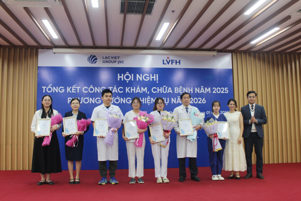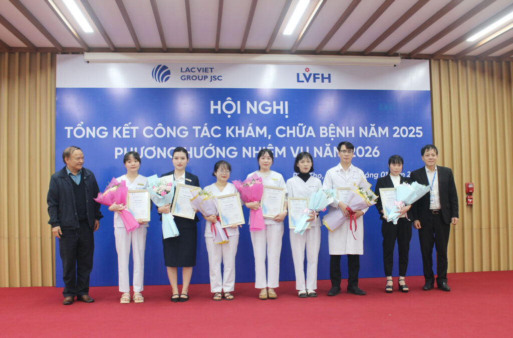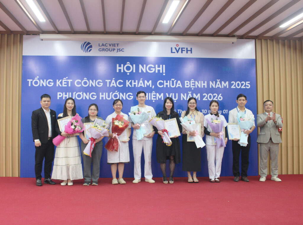 Nhân dịp này, lãnh đạo Hệ thống Bệnh viện Lạc Việt đã: Khen thưởng 10 tập thểnhiều cá nhân hoàn thành xuất sắc nhiệm vụ năm 2025. Đồng thời, trao tặng hoa đối với những y bác sĩ tốt nghiệp các lớp bồi dưỡng, nâng cao nghiệp vụ nhằm ghi nhận và lan tỏa những giá trị tích cực trong toàn hệ thống.