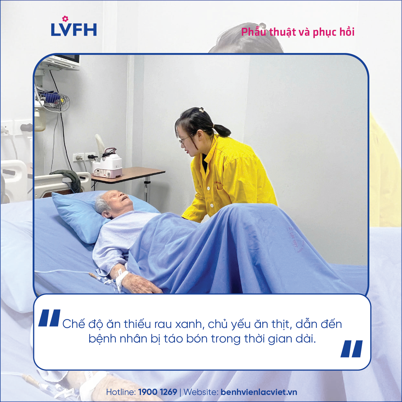 Qua khai thác bệnh sử, gia đình cho biết trước đó cụ vốn khá khỏe mạnh, tuy nhiên chế độ ăn thiếu rau xanh, chủ yếu ăn thịt, dẫn đến táo bón trong thời gian dài, nhưng không đi khám vì cho rằng đây là vấn đề nhỏ.