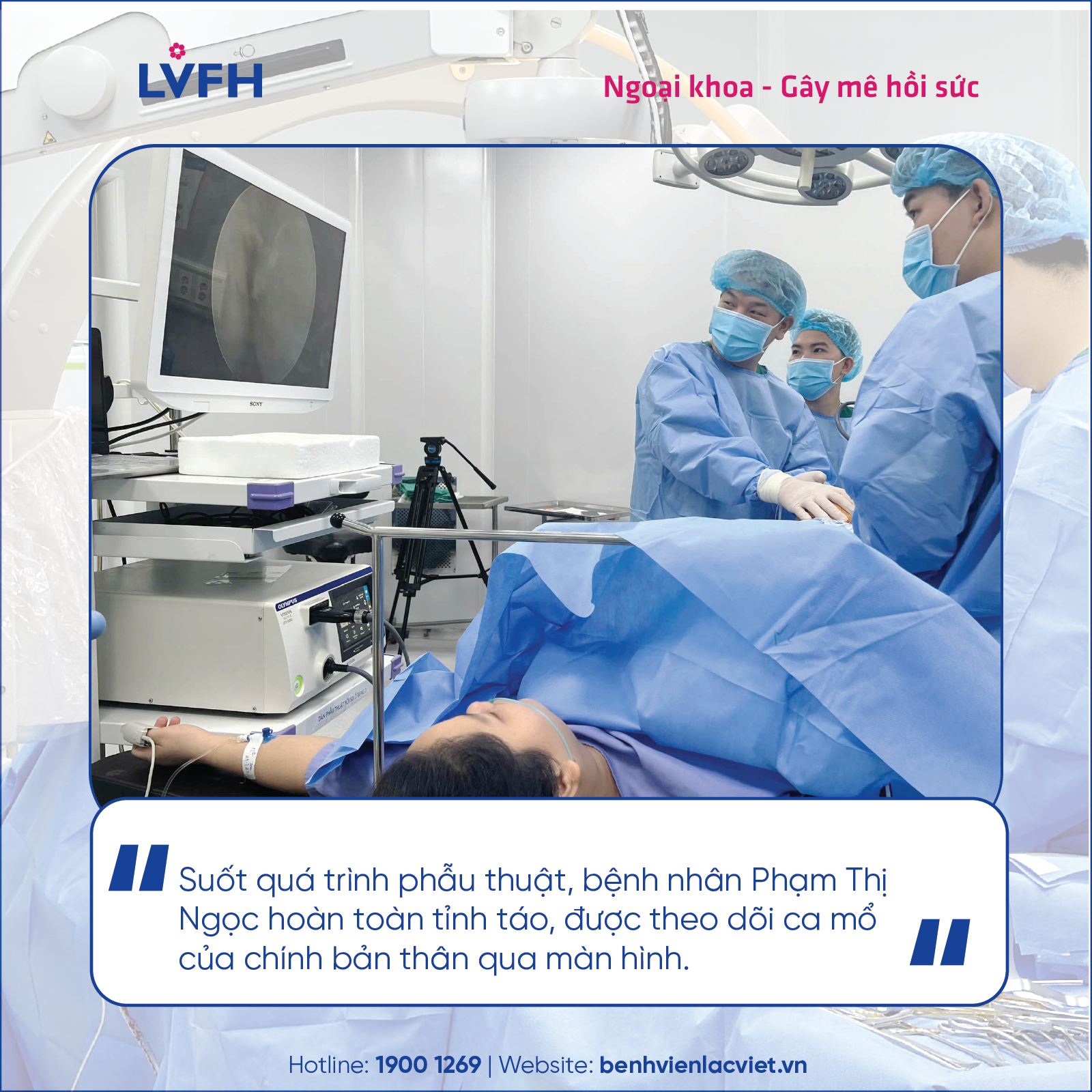 Đặc biệt, trong quá trình thực hiện, bệnh nhân được trực tiếp quan sát toàn bộ ca phẫu thuật của chính mình qua màn hình nội soi. Chị Ngọc chia sẻ: “Tôi từng tìm hiểu về phương pháp mổ nội soi tái tạo dây chằng nhưng đây là lần đầu tiên được xem ca mổ của chính bản thân. Điều này thật đặc biệt và vượt ngoài tưởng tượng của tôi. Ca mổ diễn ra nhẹ nhàng, không đau và sẽ là trải nghiệm tôi nhớ mãi”.
