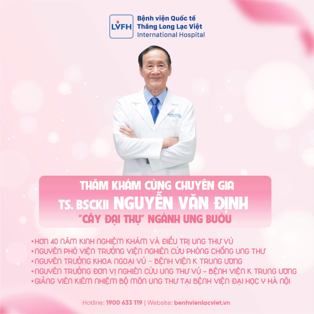 Trong cuộc chiến chống ung thư vú, “thời điểm vàng” chính là chìa khóa quyết định sự sống. Khi những tổn thương còn ở kích thước siêu nhỏ, việc phát hiện sớm giúp quá trình can thiệp trở nên nhẹ nhàng, hiệu quả và nâng cao tỷ lệ điều trị thành công. Tại Bệnh viện Quốc tế Thăng Long Lạc Việt, chúng tôi mang đến giải pháp tầm soát toàn diện: Kết hợp công nghệ Nhũ ảnh 3D Mammography tiên tiến từ Nhật Bản và sự thăm khám trực tiếp bởi “cây đại thụ” ngành ung bướu – TS.BSCKII Nguyễn Văn Định.
